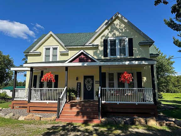 You will enjoy 9ft tongue & groove ceilings on main and 9ft knockdown ceilings on upper level as well. 3 very spacious bedrooms on upper level, each with walk-in closets! 3 Bathrooms. Private primary & spa like full bath up and a main floor full bath. Main floor laundry with folding counter and sink. The Den is a multi purpose space with wet bar and Fridge. Huge eat-in kitchen with large Quartz center island, Hickory cabinets and Stainless appliances, Off the kitchen is a relaxing Four Season porch addition 2020 with fireplace that leads out to the rear expansive deck. New roof 2023, siding 2024, septic 2023, well 2018, electrical, plumbing, furnace 2019, AC 2019, Clear Radon test 2023 and well water test. All 3 buildings on the property have new roofs in 2023. See supplements for more information. Make sure to watch the video tour with home floor plan.
