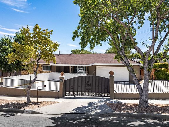 Welcome to this beautifully updated 4-bedroom, 2-bath home located in a quiet neighborhood near shopping and schools. This single-story property features all tile and laminate flooring, fresh interior paint, and LED recessed lighting throughout. The upgraded kitchen includes granite countertops, white cabinets, and stainless steel appliances. Each bedroom is equipped with a ceiling fan for added comfort. Enjoy the spacious enclosed patio overlooking a private backyard with an in-ground pool—perfect for entertaining. Additional highlights include a fully paid solar system, electric gate, central A/C/Heat and secure off-street parking. Conveniently located near major aerospace employers and commuter friendly. This home is true must-see!