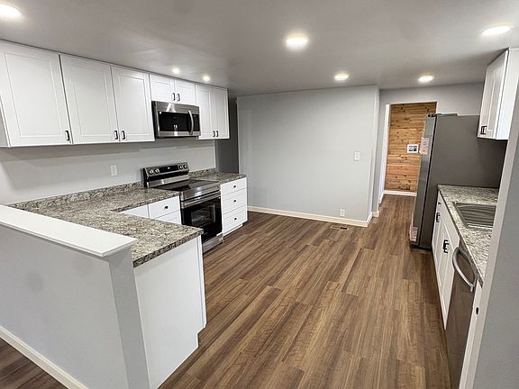 Everything inside this home is brand new including flooring, paint, kitchen including stainless appliances, bathrooms, etc. The open floor plan and vaulted ceilings make the bright living area feel huge! Enjoy 4 large bedrooms and new large bathrooms. Laundry room and pantry also included.