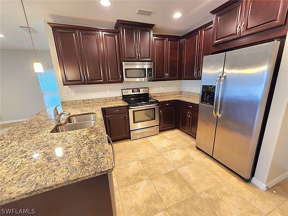 LAKE VIEW END UNIT TOWNHOME IN LINDSFORD!!! This 3 Bedroom + Den 2 1/2 Bath Home has just been refurbished on the interior including newer Stainless Steel Appliances and Brand New Stove/Oven, new interior paint, upgraded fixtures, screened entry, built in closet systems, and much more. LOOKS LIKE NEW!!!! Kitchen features wood cabinets with 42" uppers with Crown Molding and Granite counters. This unit has a beautiful LAKE VIEW and a 2 Car Garage. Liindsford is a Gated Community which offers a Community Pool and Basketball Courts. Close Proximity to I-75 and Colonial / Six Mile Cypress. This property is waiting for its new Owner and will not last long, so schedule your showings today!!!!