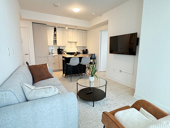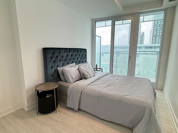 Welcome to this stunning suite at M City 2! This beautifully designed 2-bedroom, 2-bathroom unit offers 738 sq ft of interior space plus a generous 143 sq ft balcony, totalling 881 sq ft. Both spacious bedrooms have direct access to the balcony and are filled with natural light, creating a bright and inviting atmosphere throughout. The open-concept kitchen features quartz countertops and built-in stainless steel appliances. One parking spot and a locker are included. High-speed internet is covered in the maintenance fees for added convenience. M City 2 offers world-class amenities, including a saltwater pool, playground, kids' splash pad, and an outdoor terrace with BBQ stations and a fireplace. In the winter, enjoy the rooftop skating rink. Inside, you'll find a stunning 2-storey lobby with a 24-hour concierge, a fully equipped fitness facility, a dining room with a chef's kitchen, and a games room with a dedicated kids' playzone. The 5th floor also offers podium-level elevators, essentially like having your own private elevators. All of this in an unbeatable location in the heart of Mississauga, just steps from Square One, Highway 403, and public transit.