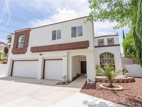 Beautiful 5 bedroom home located on a cul-de-sac on the West side of Palmdale in a quite neighborhood. You'll be certainly impressed with it's massive drive way that can easily hold 6 cars, followed by a 3 car garage, RV parking is welcome as well. As you enter the house, you'll notice extremely tall ceilings and open floor plan that's filled with natural light. On the lower level you will find spacious living room, dining room, family room, the kitchen is huge and perfect for family entertainment with tons of space and cabinets. Laundry room is on the lower level as well along with a bathroom. A beautiful staircase takes you to the 2nd level where you'll find 5 spacious bedrooms, a Massive loft/game room and a separate office space, followed by 2 bathrooms. The master suite has wide french doors followed by fully updated bathroom and walk in closet. All rooms are adorned with ceiling fans. Recessed lighting through out the house. The backyard is perfect, providing a sanctuary of relaxation for the whole family to enjoy. It's completely private and has many fruit trees such as Plum, lemon, apricot, pomegranate and more. This home is located in a highly desired neighborhood and is close to shopping and entertainment. All Appliances are included! No HOA and No Mello-Roos!