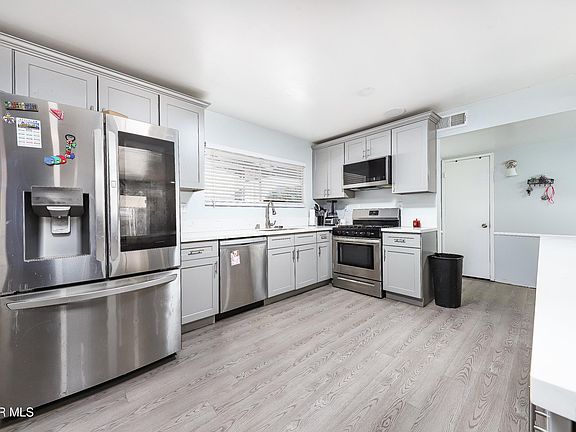 Step into this thoughtfully renovated 3-bedroom, 2-bathroom home, boasting over 1,300 square feet of style and comfort. This home has been thoughtfullly upgraded with a newly designed open-concept kitchen, featuring fresh NEW cabinets, New Baseboards, sleek NEW counters, and a brand-NEW sink & garbage disposal. The living areas showcase smooth walls, recently, added recess lighting, NEW flooring, and fresh paint throughout, creating a clean and inviting atmosphere. The kitchen, laundry room, and pantry have all been reimagined for modern living, while NEW water heater and Recently added mini split system, Additional to the evaporative system to provide year-round comfort. A beautiful Wood-burning Fireplace located in the living room sure to keep your family cozy and warm during winter family movie nights, enjoy a spacious backyard, perfect for entertaining, plus a dog run for pet lovers. 2 car garage was being used as another bedroom.The large driveway offers plenty of space for parking. With a little extra love and creativity, this home has potential to be your perfect escape. Located conveniently close to the freeway, mall, hospital, restaurants, multiple parks and great school districts. This home is ready for the next family to make it their own!