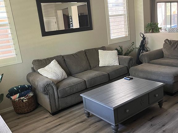 Spacious rental in beautiful Power Ranch Community close to San Tan mall shopping and restaurants. New laminate flooring and plantation shutters throughout home. Washer/Dryer/Refrigerator included. 2 car garage with epoxy flooring. Primary room has a very large walk-in closet, separate tub and upgraded shower. Down the hall are two other well-sized bedrooms. This home faces a beautiful grass common area. Power Ranch offers 11 different parks, several pools, various sports courts, 26 walking paths, and fishing ponds throughout. Power Ranch amenities included with renting home. Set an appointment to view this beautiful home today.