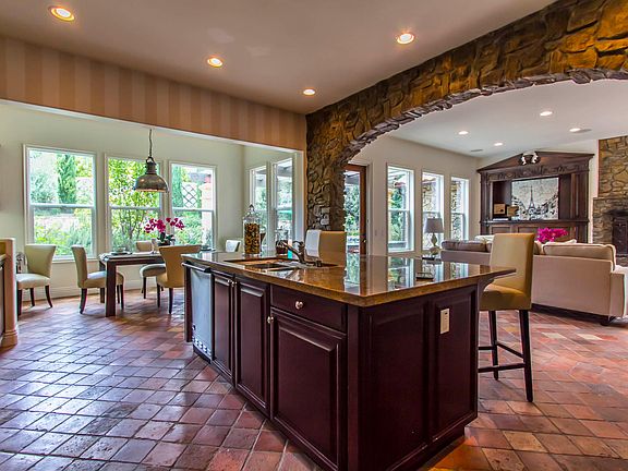You will be intrigued by this rare find, designed and customized with European style and accented with stone details unparallel and unlike any other in the area. It is located on a desirable corner lot in a most prestigious gated community, The Oaks of Calabasas. Perfect for entertaining, the home, is highlighted by magnificent stone garden details, stunning pool, spa, waterfall, glass fireside gathering, side courtyard and a Bar-B-Q center with a unique Italian influenced stone fireplace and pizza oven, for ultimate fun. The rich woods flooring throughout the home, including, the sweeping stairway highlighted with iron banister detail, all bedrooms, office with built in cabinetry, living and dining room create a warm flow. A popular floor design features a grand first floor master bedroom suite. There are three addition bedrooms suites and a multi-use gathering loft provides lots of options. An additional room has been added as a music room for a most popular recording artist but is conveniently located can also be used as a home theater. A most desirable kitchen design awaits. Granite counters, stone back splash, Viking stainless appliances and rich woods make this dream kitchen any chef's top choice. Surrounded by French doors, the center courtyard accented with a waterfall provides an indoor garden feel. Added items with attention to detail include, built-in cabinet entertainment center, added stone design, natural stone flooring, crown molding, If you wait, it may be gone!
