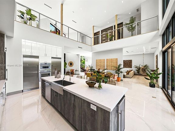 Modern 2-story pool home in South Coconut Grove near top restaurants, entertainment & the best Miami schools. Built in 2020, this 5-bed 4.5-bath 5,259-SF home offers 6,412 total SF of thoughtful design with beautiful finishes & seamless indoor-outdoor flow. A double-height kitchen/dining area overlooks the pool through stacking sliding glass doors that open fully for effortless entertaining. The eat-in kitchen features a large chef’s island & stainless-steel appliances. The main floor includes an ensuite bedroom ideal for guests. Upstairs boasts 4 bedrooms including the primary suite with a private balcony, spacious bathroom & an open den perfect for an office. The covered patio extends the living space with a summer kitchen & dining area beside the pool. 2-car garage completes the home.