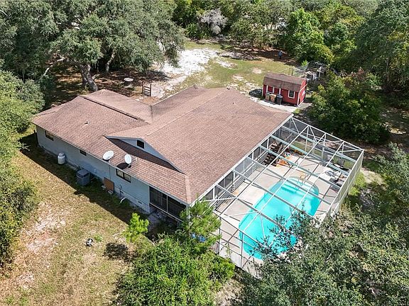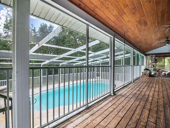 Welcome to your private retreat on 5 beautiful acres with a pond, offering the perfect blend of peace, privacy, and outdoor living. Sellers are motivated and willing to negotiate toward a roof replacement, giving you added peace of mind as you make this home your own. Tucked away from the busyness of town, this spacious 4-bedroom, 2-bath pool home gives you the freedom to truly enjoy the quiet of nature while still being just a short drive to shopping, dining, and the St. Johns River. Designed with relaxation and entertaining in mind, this home features a large screened-in pool and an expansive screened back porch - ideal for hosting family gatherings, weekend cookouts, or simply unwinding while taking in the views of your property. Inside, the home is warm and functional with French doors in the living room and primary bedroom that open directly to the porch for seamless indoor-outdoor living. The primary suite offers new carpet, a private bath with shower/tub combo, and direct porch access for added privacy. Down the hall, you’ll find three additional bedrooms, two with new carpet, and a full bath with walk-in shower. The kitchen is well-equipped with ample cabinetry, two refrigerators, a brand-new gas stove with hood vent, and a dishwasher, making meal prep a breeze. A separate laundry room with a new water heater adds to the convenience. Outdoors, the possibilities are endless. Whether it’s fishing in your own pond, exploring your acreage, or simply soaking in the peace and quiet, this property is a haven for nature lovers. With no HOA and plenty of room to spread out, you’ll have the freedom to create the lifestyle you’ve always wanted. A storage shed is also included. If you’ve been dreaming of a private pool home surrounded by land, with the space to relax, entertain, and breathe easy - this is the one! This home is just 25 minutes to downtown Mount Dora and Tavares, 15 minutes to downtown Eustis or DeLand, and only about an hour to Florida’s world-famous beaches, Orlando theme parks, and the airport - making it the perfect balance of country living with easy access to all the amenities and attractions Central Florida has to offer.