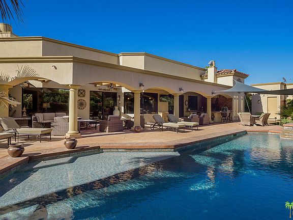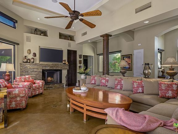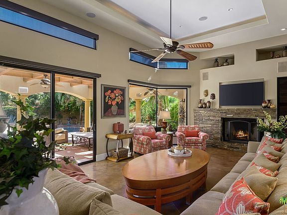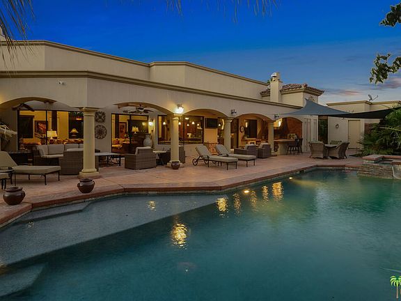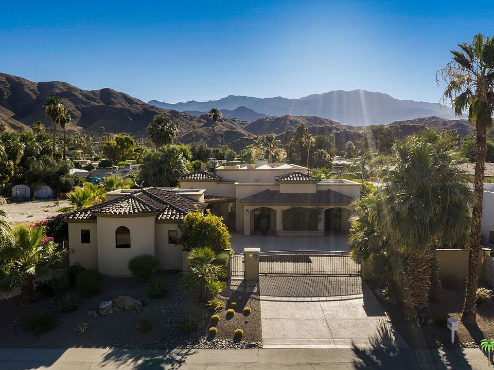 Hidden walled and gated estate is a gem with a newer constructed 3 bedroom Mediterranean home, 2 bedroom Mid-century home and a free-standing games-room all situated on an over 27,800 square foot lot with NO HOA! The main residence features elegant polished and stained concrete floors, leased solar, remodeled gourmet kitchen, voluminous great-room with entertainers' bar, and private master retreat. Resort-style living is punctuated by the huge loggia, new professional outdoor kitchen, pebble-tek pool, and spa and even your own putting green. ,