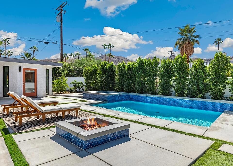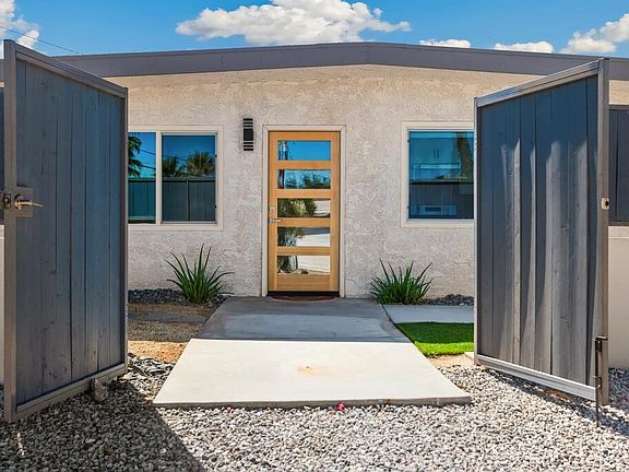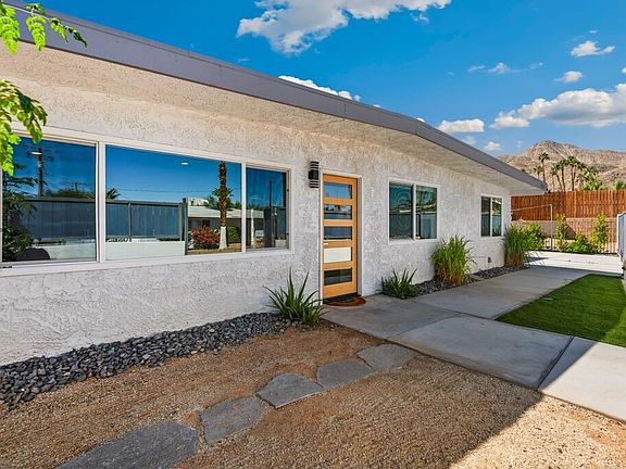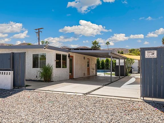 Experience the ultimate desert lifestyle at 38855 Paradise Way, where sleek modern design meets timeless mid-century charm. This 4-bedroom, 3-bath residence in the highly sought-after Cathedral City Cove has been meticulously remodeled to perfection, offering 1,777 sq. ft. of stylish, sun-drenched living with stunning mountain views. With a new solar system, private pool, and spa, this move-in-ready retreat captures the essence of a desert retreat.Inside, the open-concept layout showcases chic tile flooring throughout and a chef's kitchen that wows with bold hexagon tilework, granite countertops, and refined finishes--balancing beauty, style, and function in perfect harmony.Two primary suites with ensuite bathrooms open directly to the pool area, blurring the lines between indoor comfort and outdoor serenity. A secondary living area offers effortless versatility--ideal as a media lounge, family retreat, or home gym--with direct access to the sparkling poolside oasis. Each bathroom has been thoughtfully curated with floor-to-ceiling tile showers.Step outside and discover your private desert sanctuary--a new custom pool and spa enhanced by sleek lighting and water features, a built-in BBQ area, and multiple lounging and dining spaces designed for unforgettable desert evenings.A detached bonus studio/shed features tile flooring, a new AC split system, and a sleek glass slider--an inspiring setting for an art studio, home office, or creative escape overlooking the pool.Additional highlights include 36 solar panels with upgraded battery storage, a covered carport, and a gated driveway for privacy and peace of mind.Perfectly positioned in the heart of Cathedral City Cove--celebrated for its artistic energy, natural beauty, and mountain vistas--this home redefines modern desert living. Schedule your private showing today and experience Paradise Way for yourself.