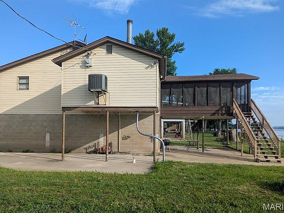 This charming home sits 30 feet from the water's edge and is not your run-of-the-mill river home. This 2-bedroom home features a large screened-in porch with an amazing panoramic view of the river. The home has been completely updated with a new set of stairs, ALL NEW lighting(LED), electric, plumbing, furnace, a/c, ductwork, 50 Gal water heater, pump, water softener, kitchen cabinets, counters, sink, laminate flooring, brand new stainless steel appliances and a newer roof that is approx 6 years old. But wait, there is MORE. The dock and ramp are both new, offering nice, easy access to the river, and there is an extra bathroom in the lower level/ garage with a wet sink and stand-alone shower for easy clean up after a day on the water. This will also include the empty lot across the street! This just keeps getting better, they're offering the home furnished. The public boat ramp is just down Hwy P, not far from the house. Home is sold as is. Seller to make no repairs. Inspection for Buyers info only