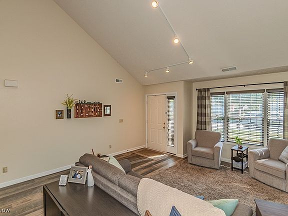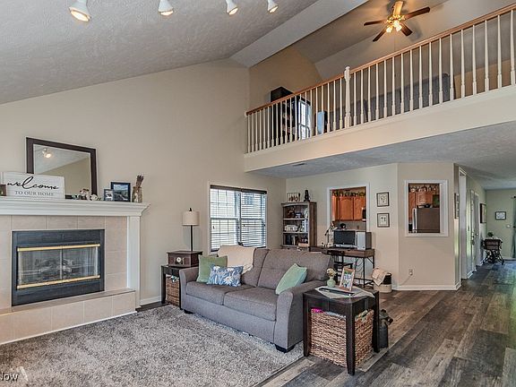 Welcome to 3886 Dugans Landing, a truly exceptional freestanding contemporary condominium nestled in the desirable community of The Landing at Dugan’s Farm, located in the heart of Perry. This meticulously maintained home offers an impressive blend of modern sophistication and functional design, boasting over 1,700 square feet of beautifully finished living space across two thoughtfully designed levels. Step inside to a breathtaking open-concept great room adorned with rich vinyl plank flooring, dramatic vaulted ceilings, and a striking gas fireplace that anchors the space with warmth and elegance. The formal dining area seamlessly transitions into a tastefully updated kitchen featuring newer appliances, custom wood cabinetry, upgraded countertops, and LED lighting. The main level also includes a private primary suite complete with a spa-like bath showcasing a soaking tub, walk-in shower, and generous walk-in closet. An additional bedroom, half bath, and a conveniently located laundry room—adjacent to the large 2 car attached garage—complete the ideal one-floor living arrangement. Upstairs, a spacious lofted family room overlooks the great room below and is joined by a third bedroom and second full bathroom, offering flexible space for guests, home office, or recreation. Step outside through the dining room’s sliding glass doors to a charming concrete patio, perfect for al fresco dining or quiet relaxation. With its neutral décor and updates, this home is turnkey and move-in ready. A rare opportunity in a serene, well-kept community.