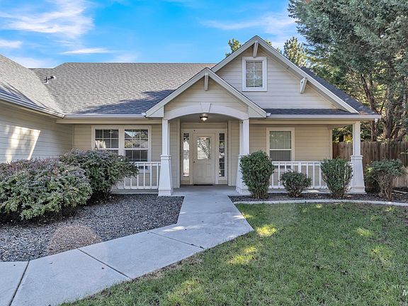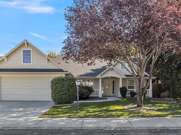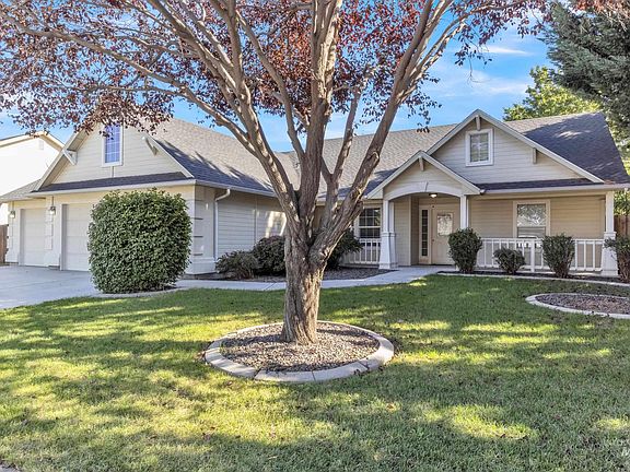 Charming single-level home in the desirable Cedar Springs community, just a short walk to Settler’s Park in Meridian with amenities for every age. Welcoming front porch brings you into this 3-bedroom, 2-bath home which also includes a office that can serve as a 4th bedroom. Enjoy a spacious great room with vaulted ceilings that looks onto a covered back patio with ceiling fan, perfect for relaxing or entertaining. The backyard offers two spaces, one with mature trees for privacy and the other area with grow boxes, storage shed, and apple tree. Inside, you’ll find new carpet, fresh paint on select walls, upgraded countertops in the kitchen and bathrooms, new bathroom faucets, and a kitchen upgrade featuring a new sink, faucet, garbage disposal plus a one-year-old dishwasher. All countertops come with a 5 year guarantee. The kitchen also includes a gas stove, refrigerator, and microwave. A 3-car garage provides plenty of parking and storage w/workbench & storage shelves. Nestled on a quiet residential street with established landscaping, this home combines comfort, convenience, and curb appeal in one great package. One year home warranty with accepted offer provided by seller.