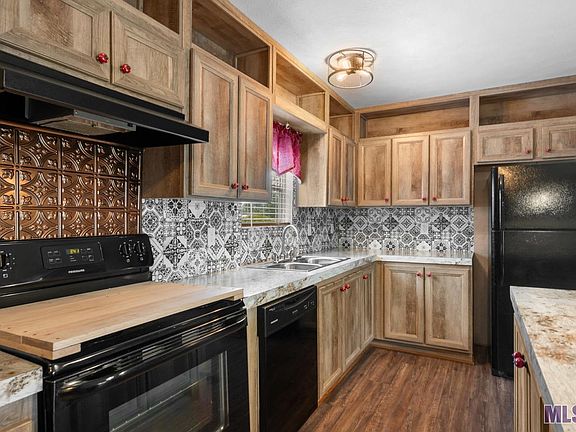 This 3-bedroom home is nestled on 0.65 acres in Denham Springs on a rural tract. This home features an open floorplan, a bright interior, and laminate wood flooring that flows throughout the home. The kitchen offers wood-stained cabinetry with accent tile backsplash, an electric cooktop, and an oversized island with a breakfast bar, perfect for casual dining. The bedrooms are spacious, all with walk-in closets, and the master bath features double vanities, a large soaking tub, and a separate shower. You will love your evening on the enclosed back porch (214 sq. ft.) with beautiful rural views. There is a 12 x 20 shop with a covered lean-to, shelving for all your storage needs, a covered lawnmower shed, and a small greenhouse. Call for your private showing today.