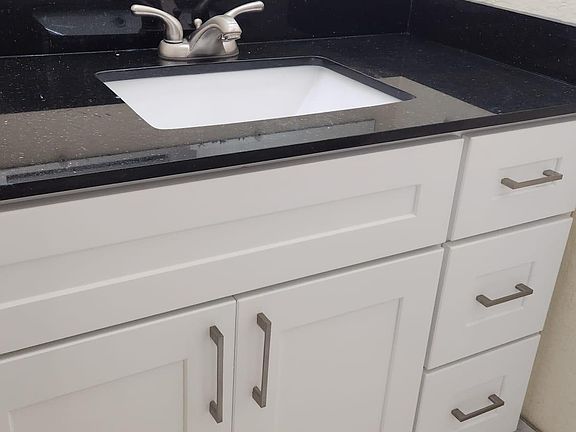 Modern bathroomOpen kitchenLarge private backyardNew recessed lightingWhite shaker cabinetsGranite countertopsLuxury vinyl planks floors