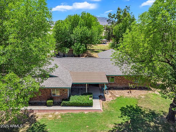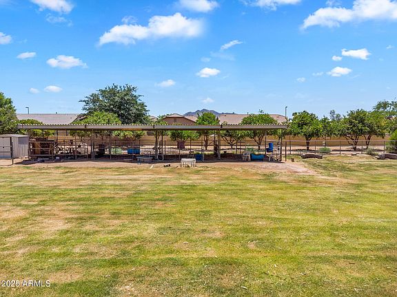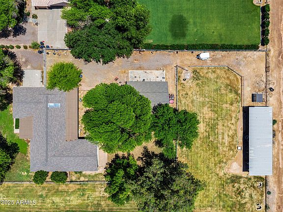 RARE - flood irrigated horse property, 1.26 acres, located on a quiet cul-de-sac street w/ no through traffic, no-HOA neighborhood & in the heart of Gilbert. NEW roof, NEW AC's & NEW primary suite addition features dual W/I closets & spacious bath. Den + AZ room adds flexible living space. Vaulted ceilings in living room & no carpet t/o. Horse amenities include 4 horse stalls, grassy pasture & bridle path from back of property. Plenty of space for RVs, toys, or future arena. The large barn doubles as a workshop, offering plenty of room for tools, projects, or equipment storage. Brick-front exterior, lush green lawn, and irrigated pasture shaded by mature trees create a setting that feels more like Texas Hill Country than the Arizona desert. Hard-to-find combo of land, privacy & location!