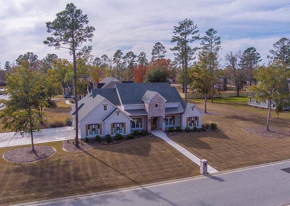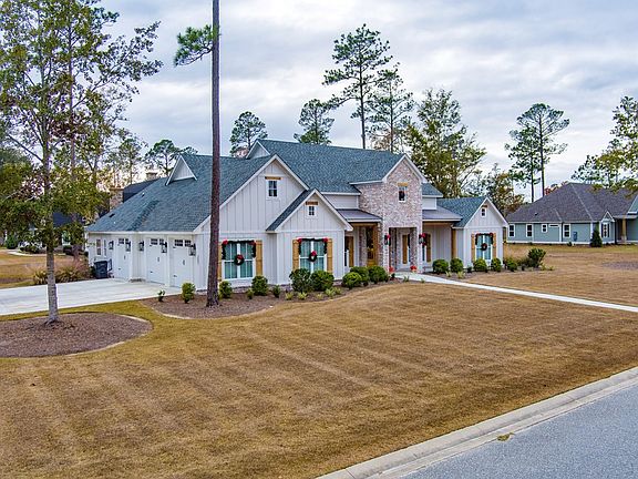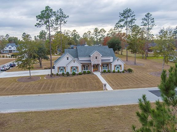 Stunning 4 Bedroom/3.5 bath home located in South Ga's 24/7 security gated Premier Golf Course Community! Built in 2022, this move-in ready home is "better than new!" Pristine condition & competitively priced! As you enter the foyer, the beautiful brick paver flooring creates a nice flow into the open living room and kitchen. Open floor plan featuring large gourmet kitchen boasting custom cabinetry, island, granite countertops, SS appliances & a large walk in pantry. Vaulted ceilings, cedar beams, and neutral colors help make the main living areas feel spacious and open. Huge master bedroom with master bathroom suite featuring tile flooring, his and hers vanities w/ granite countertops, tiled shower, and soaking tub! Walk in closet with access into the laundry room makes putting away laundry a breeze! 2 of the spare BRs have access to a full hallway bathroom with double vanity & granite countertops and 3rd spare BR has a full bathroom! The flex-room currently serves as an office, but could easily be used as a 5th bedroom. Enjoy entertaining guests in the large open living room with a cozy brick fireplace inside or entertaining guests outside on the covered patio complete with wet bar, outdoor fire place, and outdoor grill! Surround sound speakers throughout the major living areas including the living room, outdoor patio, and master bedroom allow you to enjoy music anywhere or never miss the biggest football games! Beautiful neutral colors, shiplap, marble and granite countertops, & custom finishes throughout really make this home stunning! Exterior features a corner lot in a 24/7 gated golf course community that is just a short golf cart ride to the Davis Love III designed golf course, Oaks Restaurant, 2 community fitness centers, 2 community pools, tennis courts, fishing, and trail riding! Tankless water heater, corner lot, 2.5 car garage, and irrigation system! Copy and Paste the virtual tour link: https://www.youtube.com/watch?v=pNTtg3bNjPo