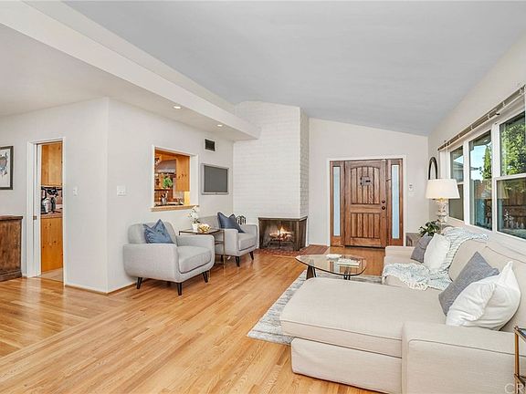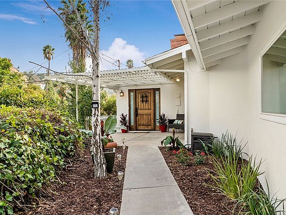 This brilliant Mid-Century contemporary home is located in the desirable South-of-the-Boulevard Sherman Oaks hills. Tucked away well above the street, this home offers privacy and a sense of tranquility, with its towering pine trees on the hillside above. This 4 bed 3.5 bath home with numerous windows and glass doors features uplifting mountain views, encouraging indoor-outdoor living. You'll love coming home to this country kitchen featuring a pantry area, built-in wood-paneled Sub-Zero fridge, stainless steel Thermador Professional range & hood, custom cabinetry, recessed lighting, and spacious adjoining laundry area. An open living and dining room layout with hardwood floors and a modern brick wall fireplace creates an inviting and cozy spot for family gatherings or social events. Recent upgrades include brand new bathrooms, new front door, new double paned windows, and hardwood flooring in two of the bedrooms. With an en-suite bathroom, the fourth bedroom makes a fantastic guest room, office, or at-home gym. With an attached garage that includes built-in storage cabinets, this home is move-in ready. Enjoy the updated landscaped backyard, with brick paved patio, surrounded by lush greenery and plenty of room for outdoor dining. Ideally situated, only minutes to Ventura Blvd, the Galleria, Arclight Cinemas and great restaurants, as well as quick freeway access to all Valley and Westside destinations.