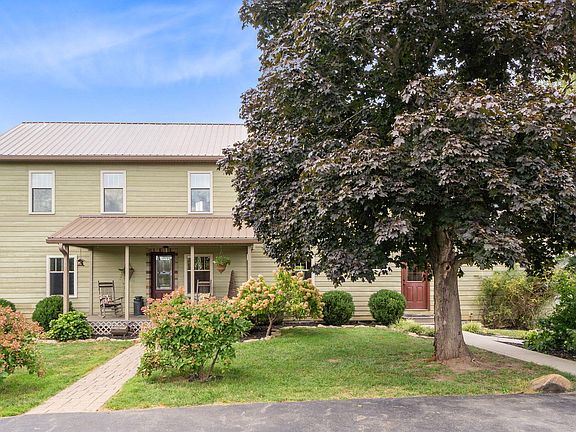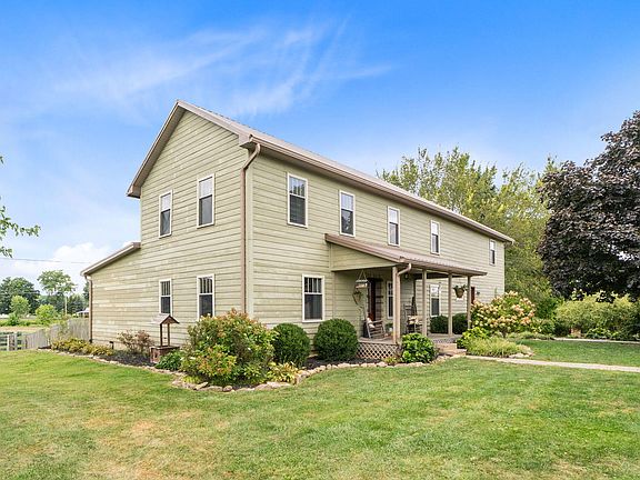 Welcome to this stunning 4-bedroom, 2.5-bath home with a full unfinished basement, set on 3.57 acres. Offering generous living space and stylish updates throughout, this property blends modern comfort with timeless charm. Step through the covered front porch and into an inviting interior where the heart of the home is the beautifully updated kitchen. Here you'll find plentiful cabinetry, quartz countertops, a massive island, and a striking copper hood vent, all open to the spacious family room—perfect for gathering and entertaining. Hardwood and tile details add warmth and durability, while the thoughtful layout provides both functionality and comfort. The bathrooms have been impressively renovated with high-end finishes. One full bath features a double vanity, tile floors, and a custom tile stand-up shower with a glass enclosure. The primary suite offers a true retreat with a vintage double vanity showcasing copper basins, a copper soaking tub, and a tile shower with frameless glass surround. A half bath adds convenience for guests, while the full old style unfinished basement provides plenty of space for storage. Outside, the property continues to impress. Enjoy morning coffee on the covered front porch or relax on the back deck overlooking the open grounds. A 3-car detached garage and a large pole barn provide ample room for vehicles, equipment, and workshop needs. With 3.57 acres of space, this property is ideal for those seeking privacy, functionality, and the perfect setting for country living within reach of modern amenities.