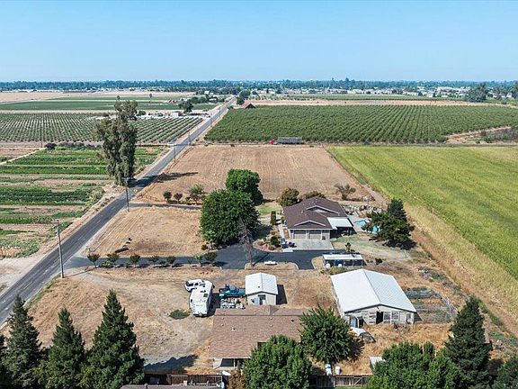 Sprawling country property with ENDLESS POTENTIAL! Not to be missed this nearly 26 acre property offers income potential, horse property ready with 6 stall barn (3 stalls have outside runs), w/ metal roofing, tack room and wash racks. Irrigated field w/ crops (currently leased). Main home features separate living and family rooms, bonus room could be office, gym or game room. In-ground pool and spa w/ new sand filter & separate propane tank. Spacious covered patio. Main home needs some TLC but has giant potential. Separate mobile home on property is 3/2, partially re-roofed, newer water heater, needs some TLC as well. 4 pen dog kennel and more! Experience country living yet just minutes to HWY 99.