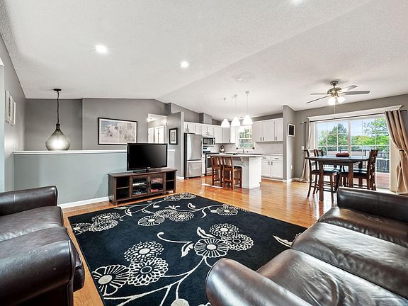 Welcome to your ideal Eagan home in the coveted school district 196! Step into this inviting abode and be greeted by an airy open floor plan that seamlessly connects the kitchen, boasting modern stainless steel appliances and timeless white cabinets, to the spacious living room. Entertaining is a delight in this open space! Gleaming hardwood floors adorn almost the entire main level, guiding you to the two upstairs bedrooms for peaceful retreats. The lower level, designed as a walk-out in the back and adorned with look-out windows in the front, is bathed in natural light. Here, you'll discover a generously sized family room complemented by a convenient kitchenette/bar, just steps away from the sliding doors leading to the outdoor oasis. The lower level also features two ample bedrooms and a stylish 3/4 bathroom. The expansive backyard invites you to enjoy the new deck, outdoor activities, from sports games to cozy bonfires and even hosting performances.