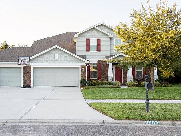 Exquisite and spacious home with pristine pond and preserve views on one of the largest lots in Two Creeks! Ample parking with 3 car carriage garage. Extended back covered patio w/pavers and fire pit. Open floor plan with natural light from the 2 story wall of windows. Gourmet kitchen includes 42'' cabinets, stainless steel appliances, corian counter tops, and large kitchen island w/separate dining nook. Wood flooring in the dining room and family room, with ceramic tile in all wet areas. Relax in your family room with a built-in bookcase and fireplace. The downstairs master suite includes trey ceilings, double vanity, soaking tub, and separate shower. From the 2nd story, continue to enjoy wide open views of nature while relaxing in the large flex room, 3 bedrooms and bathroom.