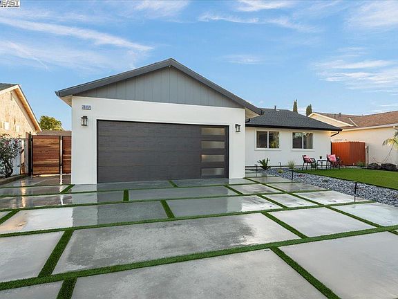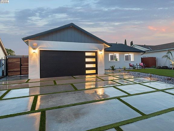 This 4-bedroom, 2-bathroom home offers a bright and airy living space, situated on a spacious lot in the lovely Mowry West community of Newark. Boasting fantastic curb appeal with a meticulously landscaped front yard, this residence features a stunning gourmet kitchen with new white sleek cabinets, custom porcelain countertops, and high-end appliances. The hallway bathroom is beautifully appointed with imported porcelain tile, a curbless walk-in shower, and a smart bidet toilet. The spacious master bedroom includes a luxurious en suite bathroom with a jetted tub, shower, and high-end finishes. The large family room is perfect for gatherings, featuring a new sleek Electric fireplace and a modern Porcelain slab from floor to ceiling. With numerous upgrades throughout, lush green landscaping, and easy access to Highway 880/84, BART, New Park Mall, dining, parks, and Easy Commute to any part of silicon valley, this home combines comfort and convenience in a highly desirable location.