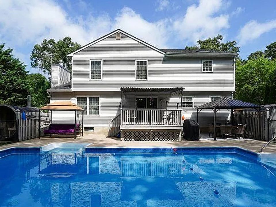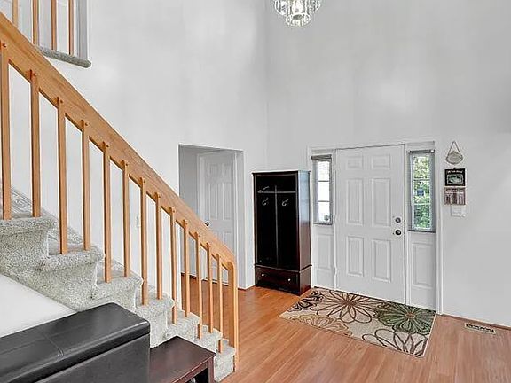 Inside you are welcomed by a striking two story foyer and bright, generously sized rooms throughout. The eat in kitchen features sliding doors that open to a private backyard retreat.
