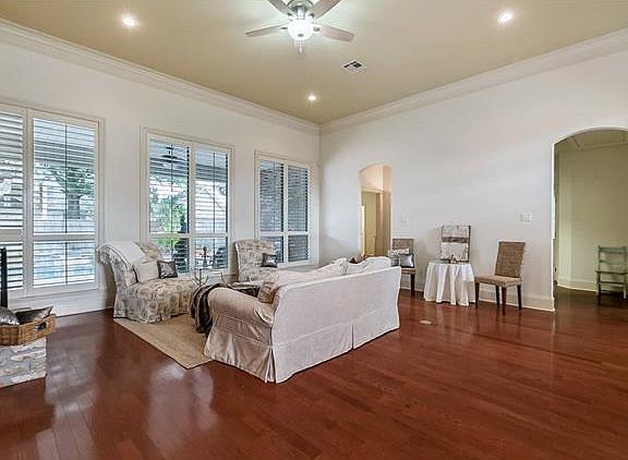 Lovely French Country with beautiful saltwater pool and spa! Split-bedroom plan, gleaming wood floors, formal dining room, kitchen with granite countertops, 5-burner gas cooktop & stainless appliances, Master with custom silk drapes and custom closets, upstairs game room. This mostly brick home has no vinyl! Fresh paint in & out, plantation shutters, new light fixtures & ceiling fans, landscaping and irrigation system, brick patio wired for sound! New attic insulation makes this home super energy efficient!