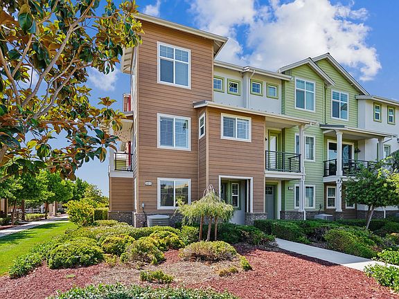 Welcome to Livermore's highly desirable and coveted SAGE community* Beautiful bright and airy corner unit consisting of 3beds/3.5 bathrooms and approximately 1,664 sq ft comes with abundant windows and open floorplan offering stunning upgrades throughout include recessed lighting, neutral paint tones, hardwood floors, upgraded carpet, built-in surround sound speakers, crown molding, plantation shutters, ceiling fans and more. 2nd level features open concept living w/kitchen & family room built-in cabinetry, large balcony &1/2 bath. Gorgeous Chef's kitchen boasts center island w/breakfast bar, granite countertops, full subway tile backsplash, large walk-in pantry SS appliances. 3rd level features stunning master suite w/walk-in closet & master bath w/standing shower & dual sinks. Secondary bedroom on this level has high vaulted ceilings, walk-in closet and attached bath. Ground level patios* Modern features and tasteful upgrades throughout enhancing both functionality and comfort. Recessed lighting, beautiful wood flooring, Upgraded open Kitchen and backsplash, stainless steel appliances, dual zone thermostats. Garage is equipped with EV charging and Water Softener