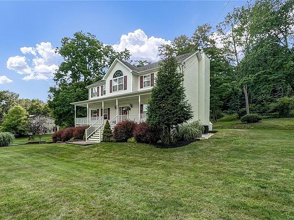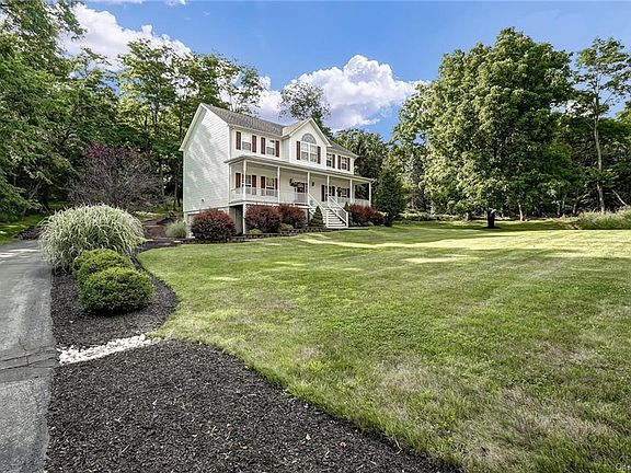 Sitting pretty on a beautiful country road is this Center Hall Colonial with inviting rocking chair front porch just waiting for you to call home. This home features hardwood floors, formal living room, spacious dining room, lovely eat-in-kitchen that opens to family room with woodburning fireplace. Off the kitchen is a beautiful 12x30 screened porch (not included in square footage) that overlooks the amazing 1-acre property, this will be your favorite room to just sit and relax after a long day. Upstairs offers a spacious master suite with walk-in-closet master bath with jacuzzi tub, three large bedrooms and full bath. Finished basement offers an additional 530sf of living space. Central Air, whole house generator and two car-garage. Perfect location for commuting. With basement and screened porch, which have COs total square footage is 3400.
