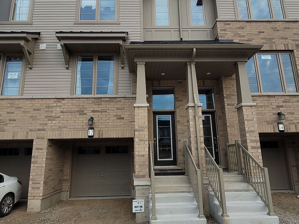 Now available for Sale Unit 12 at 389 Conklin Road! This never-occupied and Vacant, 3-storey townhome in West Brant offers approx. 1,500 sq. ft. of thoughtfully designed living space in a walkable, family-friendly location. This unit features several upgrades, including kitchen backsplash. The entry-level welcomes you with a versatile den that walks out to a private backyard ideal for remote work, workouts, or play. Upstairs, the open-concept kitchen, dining, and living area is filled with light and features a charming Juliette-style balcony perfect for morning coffee or evening breezes. Window coverings throughout add comfort and privacy, and a powder room completes this level. With plenty of green space, parks and nearby amenities, this home is perfect for families, down-sizers and young professionals. All the appliances are installed and ready to use. On the top floor, you'll find three spacious bedrooms, including a primary suite with an ensuite and walk in closet, plus a second full bath. This home blends practicality with contemporary style for easy living. Located directly across from Assumption College and close to elementary schools, shopping, parks, and the scenic Walter Gretzky Trail. Visitor parking on-site and quick highway access makes it exceptional buy opportunity. Make this brand-new townhome your next home in beautiful city of Brantford.All the Bedrooms, Kitchen and Dining, Living Room and Den are Virtually Staged.