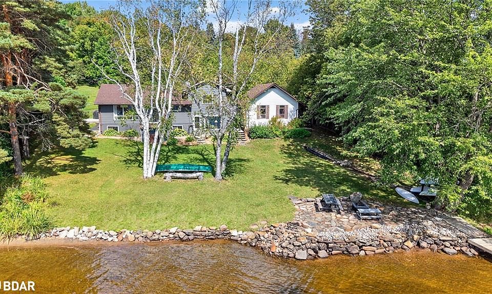 Welcome to your dream Muskoka retreat! Nestled on the sought-after Narrows in Huntsville, this beautifully renovated 4-level side split home offers the perfect blend of year-round comfort, modern upgrades, and classic cottage charm. Enjoy southern exposure and panoramic waterfront views from your expansive private dock, ideal for relaxing, entertaining, or setting off on a boat ride to explore over 60 km & four connected lakes – Fairy, Vernon, Mary, and Peninsula. Whether you're into water sports, fishing, or scenic cruising, this location delivers the full Muskoka experience right from your backyard. Inside, the home features 4 spacious bedrooms, a flowing layout perfect for families or guests, and tastefully updated finishes throughout. The main living areas are bright and welcoming, with large windows that bring the outdoors in. Additional highlights include a double car garage with loft storage, ideal for all your gear, toys, and seasonal items. Located just minutes from downtown Huntsville, you’ll enjoy easy access to shopping, dining, schools, healthcare, and all big-town amenities – while still feeling tucked away in a serene waterfront setting. This is a rare opportunity to own a turnkey waterfront property in one of Muskoka’s most desirable locations. Whether you're seeking a permanent residence, a vacation getaway, or an investment, this home checks every box. Recently Upgraded in 2020, Furnace 2019, 2004 existing septic replaced with fast system 0.5 visual and audio alarm system and new raised bed (bubbler system estimated value $10,000.00) documentation available, Newer Weepers Installed around Perimeter of home, 2012 additional dock elements added to dock (ramp 6’ x 12’ & dock 12’ x20’ $8017.35) documentation available.