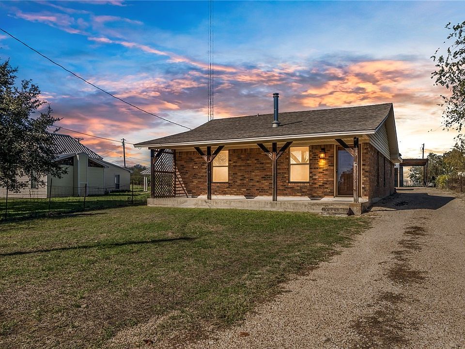 Cozy cabin like home with 2 bedrooms and 1 bath. Nice front porch area for sitting. Wood burning stove in the living room. Two bedrooms share a single bathroom with a tub and shower combo. Open concept living and dining space with vaulted ceiling. Home has had some updates. Seperate Laundry room area is off the kitchen. There is a detached hobby room with a covered porch that could be finished out as guest quarters. It has a wood burning fireplace, wood ceilings and tile flooring. This space could be used for efficiency type living or make a great man cave. Spacious enclosed workshop area with built in cabinets and electric. At the back of the property is a metal barn with RV space on the side. China Spring ISD. Lots of potential and possibilities with this one!
