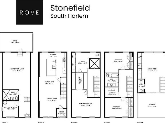 Welcome to Stonefield, a meticulously renovated South Harlem brownstone that blends timeless character with modern sophistication. This expansive 3,200-square-foot home features three bedrooms, three-and-a-half bathrooms, and multiple levels of beautifully designed living space, including a top-floor entertaining lounge with wet bar and a private rooftop terrace.