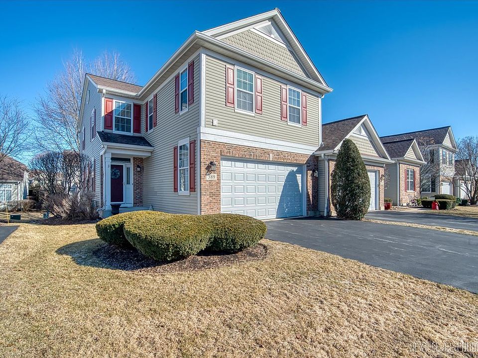 This Is It! A Stunning Updated Dunhill Model! Step into sophisticated comfort with this gorgeous 4-bedroom, 3.1-bathroom home, offering an open-concept layout designed for both style and functionality. This end-unit allows plenty of light! The eat-in kitchen seamlessly connects to the living room/dining room combo, complete with a gas fireplace, creating a warm and inviting space for entertaining. With over 3,000 square feet of meticulously finished living space, this home is truly a showstopper! Fresh paint and newer carpet throughout enhance its modern appeal. The remodeled kitchen shines with stainless steel appliances, quartz countertops, a stylish tile backsplash, and a sleek modern light fixture. The dining area leads to a spacious deck, perfect for outdoor relaxation. The primary suite is a retreat in itself, featuring a double-door entry, tray ceiling, and a walk-in closet with built-ins. The luxurious master bath boasts a soaking tub, separate shower, dual vanity, two skylights, and a linen closet. Bedrooms 2 and 3 offer generous space, each with a ceiling fan and light. Need flexibility? The upstairs office easily transforms into a fifth bedroom! The convenient second-floor laundry room includes cabinetry, and the washer and dryer stay. Downstairs, the fully finished English basement (remodeled in 2014) provides even more living space, featuring a family room, 4th bedroom, full bath, and a mold-resistant Matrix wall system. The utility room is equipped with a durable epoxy-coated floor. Recent updates: Water Heater (2023) Furnace (2020) AC (2024) Roof (2019) Garage Door (2025). The Garage Shelving Stays. Located in the sought-after Geneva School District, just minutes from Geneva Commons, parks, scenic walking & biking trails, shopping, restaurants, and more! This home has everything done for you-completely move-in ready! Don't wait-this one won't last!