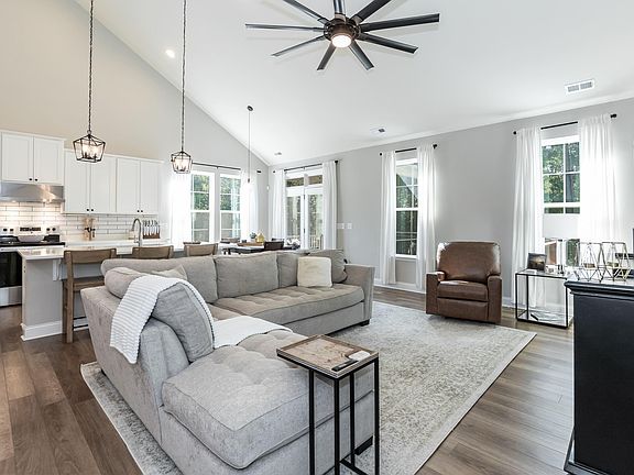 Main Level Living. Welcome to Mill Bend Drive — where peaceful living meets everyday convenience! Just 7 miles from all that Fuquay-Varina has to offer, including shopping, dining, healthcare, and entertainment, this stunning home offers the best of both worlds: space, serenity, and accessibility. Nestled on a beautifully wooded 0.84-acre lot, this home offers a private retreat surrounded by nature. Step inside to find a grand dining room with elegant coffered ceilings, setting the tone for refined living. Continue down the hall to the open-concept living room, kitchen, and breakfast area, highlighted by soaring 20-foot vaulted ceilings that fill the space with natural light. The kitchen is a showstopper with gleaming white cabinetry, quartz countertops, a ceramic tile backsplash, and a convenient butler's pantry—perfect for storage and entertaining. The living room offers a cozy yet spacious gathering space, ideal for relaxing or hosting guests. The primary suite is located on the main level and features a tray ceiling, abundant natural light, and a luxurious ensuite bath with a 5-foot herringbone-tiled shower with a bench, double quartz vanities, and a spacious walk-in closet with built-in wood shelving. Upstairs, three additional bedrooms and a full bath offer plenty of room for family or guests. Step out from the breakfast area to your screened-in porch—a serene spot to sip morning coffee or unwind in the evening. Just beyond, a large attached deck invites outdoor living at its best: perfect for grilling, dining al fresco, or enjoying quiet evenings under the stars. The expansive yard provides peace, privacy, and endless possibilities for gardening, play, or simply soaking in the tranquility of your surroundings. Your yard will shine brighter than the rest with its meticulously maintained grass and irrigation system. Mill Bend Drive—your private retreat just minutes from town!