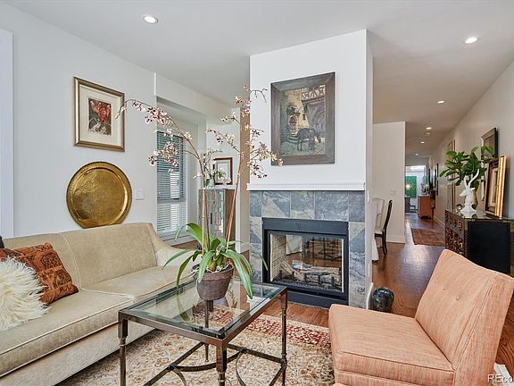 A rare opportunity that you don't want to miss!  Impeccable contemporary modern four level townhome with incredible outdoor living space and multiple decks/patios with views. Enjoy Colorado living in the no maintenance private serene backyard. The front patio welcomes you to exquisite indoor living.  As you enter you are greeted with a two-way fireplace between a cozy living room with large windows and a separate dining room.  The kitchen is open to a  large eat-in or entertainment space and features quartz counters, newer stainless appliances, breakfast bar and overlooks the outdoor living space.  A powder room rounds out the main floor and the entire level features hardwood flooring.  Walk up to the second level and you will find the Main bedroom with an en-suite five-piece bath, two walk-in closets and a private balcony. The second Main bedroom has an en-suite  bath and walk-in closet.  The convenient laundry has large shelving for additional storage. The third floor flex/office space will WOW you with double glass French doors opening to an expansive deck with views.  Another bedroom on this floor features a wraparound deck with full mountain and city views.  A full bath completes the third level.  You will enjoy entertaining in the large  second living room on the lower level with a wet bar and full-size refrigerator. The fourth bedroom and full bath are perfect for guests. Newer carpet, paint, light fixtures, ceiling fans, refinished hardwood floors and extensive landscaping creating the resort like outdoor living space are just a few of the many upgrades. NO HOAs (Party Wall Agreement). The two-car detached garage features extensive shelving for storage and is large and deep enough for two full size vehicles.  Around the corner from Alamo Placita Park - walk to restaurants, bars and coffee shops. Close to Cherry Creek, Denver Country Club, Capitol Hill, Alamo Placita Park & much more-don't miss this modern urban oasis located in a beautiful historic district.