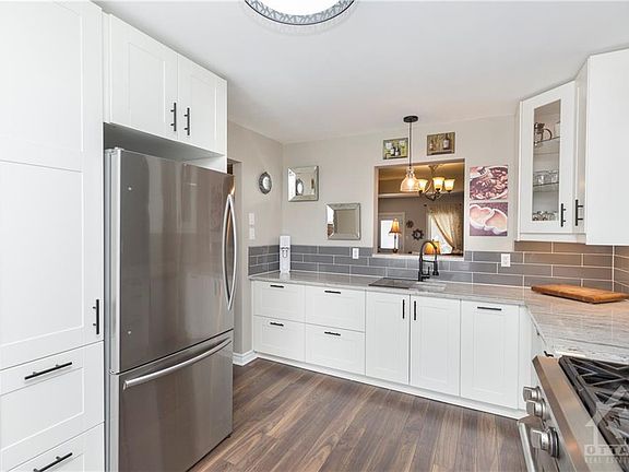 WOW! Turnkey 3 bedroom end unit in desirable Katimavik! Enjoy beautiful updates such as a brand new kitchen, new flooring in most spaces, fully repainted - all in 2020! No rear neighbours for ultimate privacy & close proximity to all of the essentials [schools, shopping, nature trails, transit, HWY access]. Upon entering, you will find a large entrance, a flex space with large windows - great for a playroom, gym, home office. The main floor boasts a spacious living & dining room, a GORGEOUS kitchen, as well as laundry & powder room. One level up presents 3 bedrooms, all great in size & 2 full bathrooms. TONS of natural light. Apx Ages: Furnace [2014], HWT [Nov 2020]. Yard can be fully fenced.