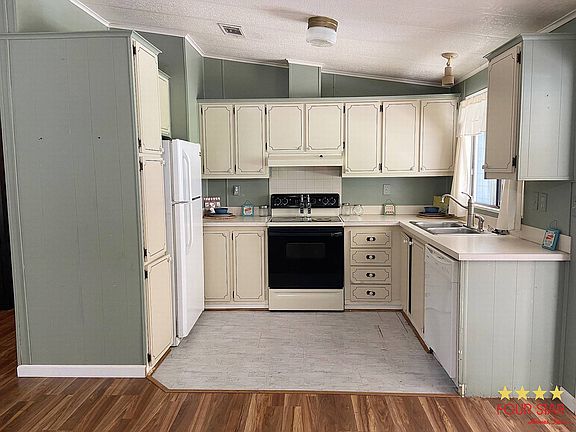 Nestled in a quiet and relaxing over 55 community with lower lot rent this beautiful two bedroom two bath home offers a lifestyle of comfort and tranquility. As you enter you are welcomed into a spacious living room with ample space for all your furniture and a large television. The living room flows seamlessly into a generous dining area with room for a large table and chairs complemented by a built in China style cabinet to display your treasured pieces. The adjoining kitchen is both attractive and functional with abundant cabinets and counter space for all your small appliances along with modern up to date larger appliances. The main bedroom is spacious enough for a large bed dresser and a cozy sitting area. It also features a walk in closet and a bathroom with a step in shower good counter space and a linen closet. On the opposite end of the home the guest bedroom offers similar comfort with room for a larger bed dresser and sitting area along with its own walk in closet. Nearby the guest bathroom provides a tub and shower combination as well as an additional linen closet. Through double glass doors off the living room you will find a large screen room ideal for relaxing while overlooking a peaceful natural setting perfect for enjoying your favorite beverage in quiet seclusion. Additional conveniences include a storage and wash room with washer and dryer and a covered carport. The community is close to restaurants shopping beaches and offers a great clubhouse and swimming pool. This home is the perfect place to enjoy the Florida lifestyle at its finest. Newer plumbing.