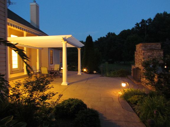 Magnificent custom built home can become your private oasis, featuring 5+ acres of beautifully landscaped property backing to 90 acres of preserved farmland - Low Taxes! Stunning stucco and stone front entry welcomes you with soaring ceilings flanked by dining room and study/office both with detailed carpentry and coffered 12 foot ceilings. The Foyer is open to another coffered ceiling in the breakfast/piano room and a full wall of Anderson windows and doors across the back of the home. Glistening hardwood flooring leads you to a gourmet chef's kitchen with Granite and Corian counters, large pantry, and plenty of cherry cabinetry highlighted by multiple glass doors and designer lighting. The kitchen is open to the step down family room with gas fireplace, flanked by large windows and transoms above. The living area is showcased by an exquisite view of your personal outdoor entertainment area with distant vistas of the rolling landscape. This area includes a trellised patio with natural stone and bluestone fireplace, built in Barbeque, electric awning and professional plantings and lighting. This executive home features a first floor master retreat in the "left wing" of the home complete with private access to the patio area, gas fireplace, two giant walk-in custom closet designs and a Master bath with large walk-in shower, whirlpool tub, private water closet and plenty of storage for linens and toiletries. An additional two bedrooms with Jack and Jill bath and laundry area complete the main floor. Upstairs you will find another living area complete with study, full bath, large bedroom or game/play room with window seats doubling as additional storage. A huge walk-in closet compliments this unique area. The study in this upper level living area has a balcony overlooking the 20 foot vaulted family room and kitchen with beautiful lighting and views. A fifth bedroom and bath can be found in the huge finished daylight basement which is complete with crown mouldings, and designer lighting. This multi-use area has large media, game and exercise rooms along with a sunlit walkout onto it's own covered patio! Basketball court, sprinkler system, security system, and built-in speakers are just a few of the many more upgrades to see when you visit this home!