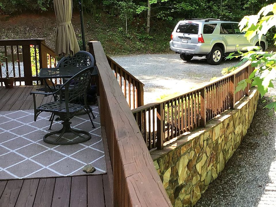 Very Private Modern Mountain View Home. Three bedrooms each with personal bathrooms. Guest bathroom on main floor. True hardwood floors. Very open design with two story high windows and multi double glass doors to large deck. Brian Larsen @ 770-778-1595.