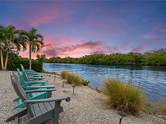 Coastal contemporary riverfront home with beautiful water views from nearly every window. Experience breathtaking long river views with a protected preserve park beyond, offering exceptional privacy. A true beach and boater’s paradise, this property is just a short walk or bike ride to Bonita Beach and Barefoot Beach, and offers Gulf-access with the ideal boating setup including a private dock, covered lift, and tiki hut. Built in 2015 by renowned Potter Homes, this residence was constructed like a fortress with all-concrete construction, hurricane-impact windows and doors, and a metal roof. Fantastic open floor plan with over 5,000 sq ft under air, 5 bedrooms + den, 5.5 baths, and a 4-car garage. The chef’s kitchen boasts dual-toned countertops, white cabinetry, a gas range, and a beautiful stone tile backsplash. Perfect for entertaining, the living room offers beautiful tray ceilings and 10-foot sliders that open to the spacious lanai with electric screens, a fireplace, and a built-in grill, all overlooking the resort-style backyard with a large heated pool, spa, and private beach area. Primary suite is located on the main living floor and offers direct lanai access and a spa-like bath featuring dual vanities, a tub, and a large walk-in shower. Upstairs, enjoy additional bedrooms and living space along with an expansive balcony with panoramic water views. Additional highlights include a private elevator, 22kW generator, newly painted exterior, and ground-level flex space. With no HOA fees or rental restrictions, this property also presents an excellent investment opportunity. Ideally located near top dining and shopping, just minutes from Mercato, The Promenade, Waterside Shops, Coconut Point, 5th Avenue, and the International Airport.