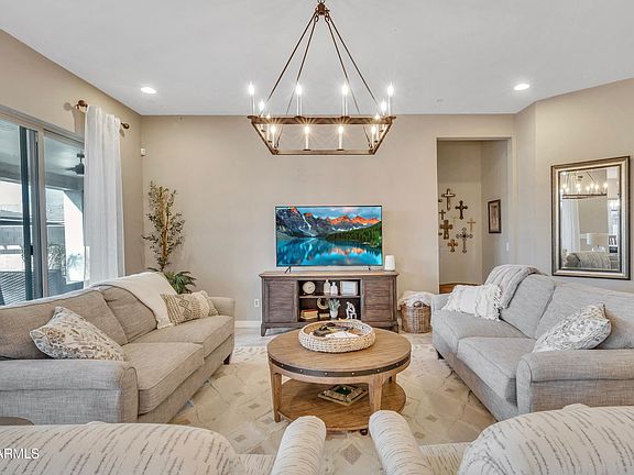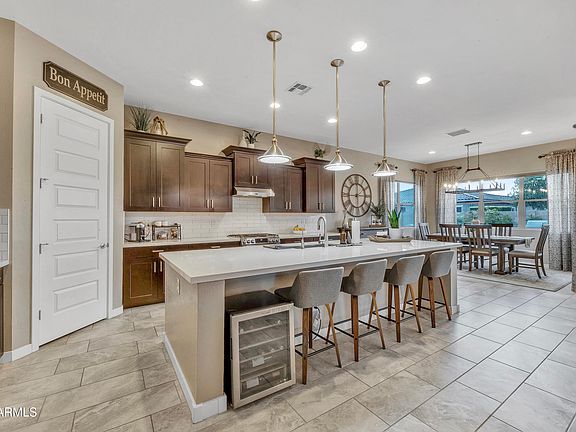A TRUE ONE of a KIND in Bridges North. This home has a back yard renovation you will not see again. But first, it's simply magnificent and flawless with the most popular open plan inside. The flow of the great room and the layout of the space along with the expanded covered patio make indoor/outdoor living everything you want from Arizona Living. This expanded patio is WOW! The tile roof line was added to match in pitch and look while seamlessly bringing in a deep living space with fireplace, TV and an enhanced lifestyle. The back also features a built in grill and pergola. It doesn't get any better. Inside, there's nothing you need do but move in and enjoy. Nearly every fixture has been replaced to provide a custom feel and the details will dazzle, all on a premium corner lot in Bridge N