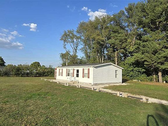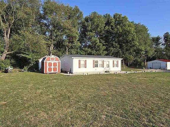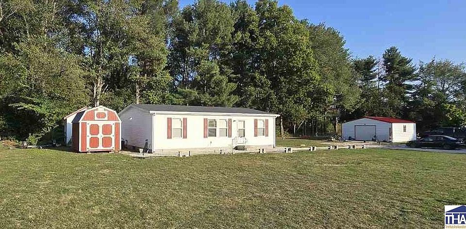 Welcome to this charming, 3 bedroom 2 bath ranch-style manufactured home nestled on a quiet 1.61 acre lot in southern Vigo County. Offering a blend of comfort and convenience, this is a perfect space for those seeking peace only minutes from Terre Haute. The brand new flooring and open concept layout creates a welcoming atmosphere and the eat-in kitchen is perfect for casual meals. The master bedroom is complete with a private ensuite and a walk-in closet. Two additional bedrooms offer versatility for office or rec space. The large yard is perfect for outdoor activities such as campfires, gardening or raising a flock of chickens. This property also features a brand new shed and detached garage/barn on a thick slab that provides endless possibilities. This home is a rare find in a desirable location. Come see all it has to offer!