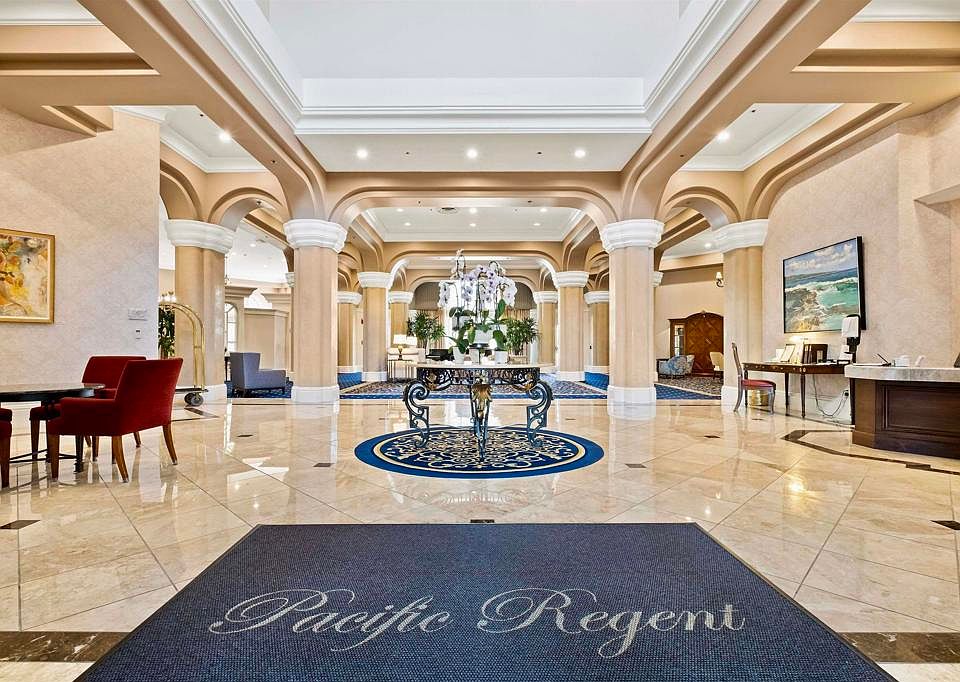 Pacific Regent La Jolla, a luxury gated 62+ community, is perfectly located in one of the most desirable neighborhoods in San Diego - UTC just east of La Jolla. It's close to the USCD medical campus, UTC shopping center, newly built Blue trolley line and beautiful La Jolla beaches. Residence #1702, a 2br +office/den 2 baths 1563 SqFt open-floor concept freshly painted condominium offers breathtaking city, mountain and ocean views. This bright and airy North-West facing residence is equipped with oversized windows, central AC & heating, large walk-in closet and a private balcony. Home to 148 condominiums, Pacific Regent high-rise provides a comfortable and secure living environment for its residents, who enjoy the retirement at its finest with upscale amenities such as 24/7 concierge and security services, weekly 1-hr housekeeping service, heated indoor pool and spa, an on-site gourmet restaurant, fitness center with daily exercise classes, quiet library, beauty salon, outdoor lounge area, 3 residential elevators and a storage locker. Pacific Regent offers a full activity calendar each day, featuring a variety of engaging entertainment and outings, tailored to please a wide range of tastes and preferences. These include numerous book clubs and lectures, walks on the beach and Balboa Park, daily movie nights and happy hours. Other features at Pacific Regent include residents-only parking garage with electric vehicle charging stations and complimentary valet parking for both residents and guests. Scheduled transportation by car or bus is available for those who prefer not to drive. This makes it convenient for residents to access medical facilities, local markets, stores and attractions. Additionally, monthly HOA dues in this well-maintained complex cover a minimum of 10 dining room meal credits per occupant, all utilities, water, trash pick up, high speed internet & cable TV, landline phone service and exterior and common grounds maintenance. Ideal location allows quick access to 805 and 5 freeways.