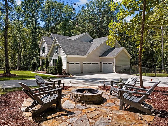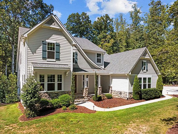 This 5 bed, 5.5 bath home offers the perfect blend of modern luxury, thoughtful design, & serene surroundings. Nestled on a 1.95-acre cul-de-sac lot, this property backs up to the protected Eno River State Park & has direct access to the Mountain to Sea trail. Premium engineered hardwoods & open floor plan create a seamless flow between living spaces. The chef's dream kitchen features Subzero & Thermador appliances, custom soft-close cabinets, quartz countertops, a butler's pantry, a large walk-in pantry, a pot filler & stunning custom tile backsplash. The first-floor owner's suite includes a spacious walk-in closet, split vanities, custom tile, a multi-jet shower & luxurious soaking tub. Enjoy a 4-bay insulated garage, with one bay converted into a custom home gym complete with treated flooring & climate control. An advanced water softening system with reverse osmosis and UV filtration ensures the cleanest & clearest water, supported by 750 gallons of reserved water storage. Also included is a 2022-installed Generac Generator, closed crawl space, Sonos wifi sound system, Unify wifi system & custom fire pit area.