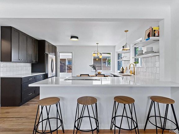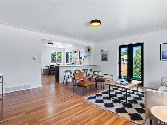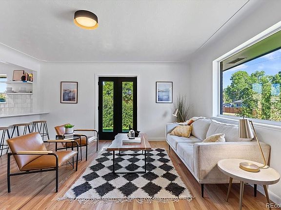 ULTRA-HIP MID-CENTURY MODERN HALF-DUPLEX WITH GORGEOUS FINISHES: original refinished wood floors, modern slate wood cabinets, quartz counters, stainless appliances, induction range (faster and healthier than gas!), matte black and gold hardware. LOTS OF SYSTEM UPDATES: new central air, new windows. FANTASTIC FLOORPLAN: open concept living with breakfast bar, built-in dining, multiple doors to outdoor space, spacious patio/yard, huge bedrooms, no shared walls-just shared garage. BASEMENT APARTMENT: separate entrance to basement, common area laundry, and kitchenette with induction stove and convection microwave make this perfect for mother-in-law, house hack, short-term rental (buyer to verify Denver requirements for renting). AMAZING LOCATION: walk to shops/restaurants on Tennyson, Billy's Inn and Safeway are around the corner, quick onto I-70.