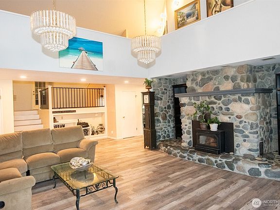 Covered detached patioCustom stone fireplaceLarge kitchenPrimary suiteUnfinished saunaOpen mezzanineVaulted ceilings