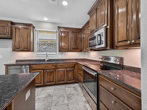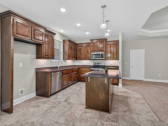 Welcome to this beautifully designed 3-bedroom, 2-bath home offering 1,700 sq. ft. with an open floorplan, comfortable living space with a desirable split floor plan. The spacious living room features a trey ceiling with crown molding and a ceiling fan, creating an elegant yet cozy atmosphere for family gatherings. The kitchen is a chef’s dream with granite countertops throughout, custom raised-panel cabinets, stainless steel GE appliances, recessed and pendant lighting, and an undermount sink. A large walk-in pantry, breakfast bar, and kitchen/dining combo provide both style and functionality. The private master suite boasts a trey ceiling with a ceiling fan, along with a luxurious master bath offering two walk-in closets, a double vanity, a relaxing garden tub, separate shower, and a private water closet. Sims, Dixon and Pace High School are the schools this home is districted to, so you can stop worrying. Additional highlights include a covered back porch, perfect for outdoor living, and a two-car garage providing convenience and storage, Hurricane protection for a discounted insurance rate with thoughtful details and quality finishes throughout, this home is move-in ready and designed perfectly.