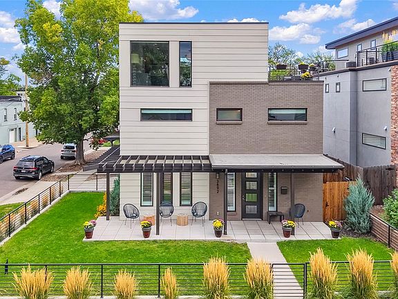 Welcome to this stunning single-family home on a coveted corner lot along Vrain Street in Denver’s highly desirable Berkeley neighborhood. Inside, the spacious living area is anchored by a gas fireplace with a custom wood mantle and designer tile surround, flowing seamlessly to a private patio through sliding glass doors for effortless indoor-outdoor living. The chef’s kitchen features floor-to-ceiling cabinetry, 2-inch quartz countertops, premium stainless steel appliances, and a generous island with an adjacent dining area. Upstairs, three large bedrooms feature high-end designer finishes, with the primary suite offering a custom wood panel feature wall, a Juliet balcony, a 14’ x 6’ walk-in closet, and a spa-inspired bath with soaking tub, dual vanities, and a glass-enclosed shower. The third level offers a versatile living area ideal for recreation, a private home office, or entertaining, complete with a beverage bar and powder room. Step outside to a spectacular rooftop deck with west-facing views—perfect for sunrise coffees, sunset dinners, and year-round entertaining. Additional highlights include brand-new carpet, a mudroom with built-in storage, an attached two-car garage, and a walkable unfinished basement for ample storage. The expansive front yard is perfect for pets, gardening, or play, with corner-lot positioning offering added privacy and curb appeal. Experience the unparalleled appeal of Tennyson Street, one of Denver’s most coveted destinations for dining, shopping, and entertainment, especially during First Fridays and the Tennyson Street Fair! From trendy hotspots like Call Your Mother, Two Hands, and Huckleberry Roasters to newcomers like Bao House, this vibrant street offers endless options, along with neighborhood staples such as Denver Biscuit Company and Hops & Pie.